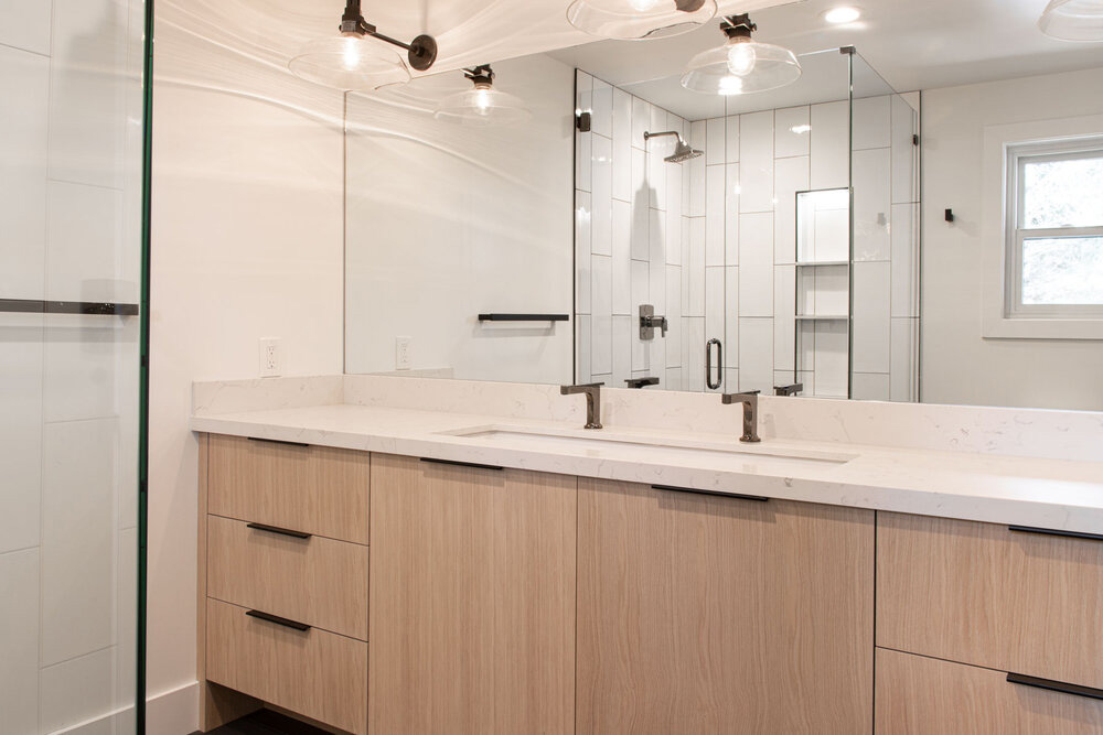 On top of giving this large home a complete modern revamp, our clients wanted to make sure it was a perfect home for raising kids in. We worked with them to remodel the house from the studs up, transforming the house into a beautiful home made up of large open spaces and plenty of modern touches. One of our favorite areas of the home is a “’game room” space that links to two smaller kids’ bedrooms together. It’s perfect for giving the kids an area to themselves where they can bond together.