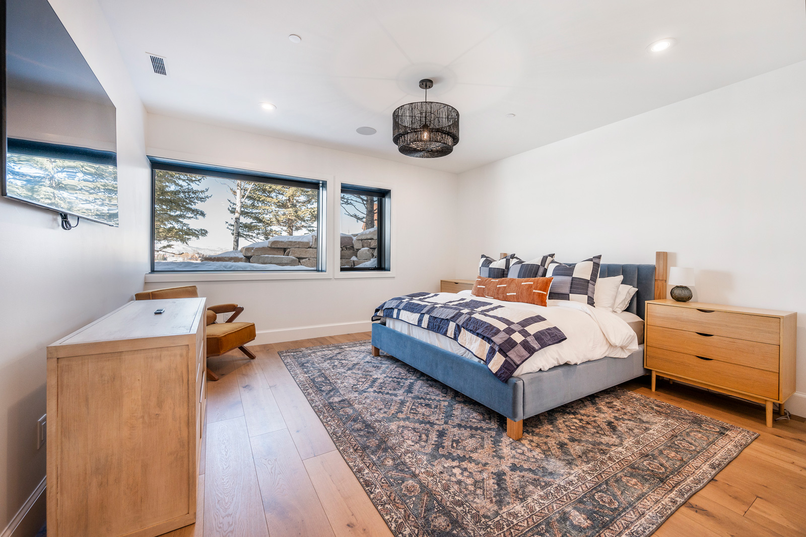 We took an 8000 sq ft home sitting on 20 acres and added 4500 sq ft addition. This project was challenging because we had to work around the existing home on a steep hillside. In addition to the steep hillside, we had to contend with bedrock, and rock slides that lead to requiring shoring the hillside back to prevent future movement and damage to the home. This addition included 4 bedrooms with ensuites, a private office, a gym, storage, and and incredible state-of-the-art theater / golf simulator combo. This addition captures the true beauty of Park City as it sits facing Canyons Village at Park City Mountain.